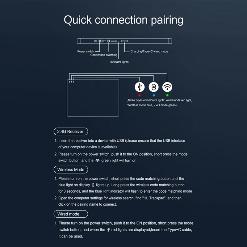 AY14 -Trackpad Bluetooth Wireless 2.4G Wired Touchpad Touch Pad Rechargeable Trackpad Mouse For Laptop PC Pad