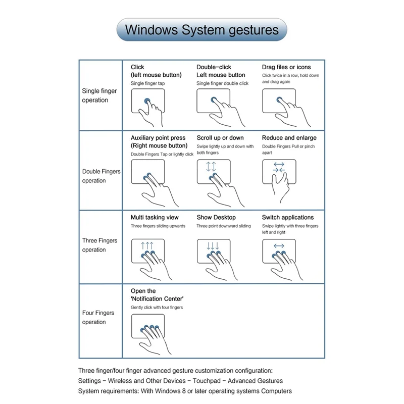 Operating System Requirements: For MacOS 15.1 or later; For iPadOS 14.5 or later; For Windows 8 or later. (Note: Please use a receiver or wired connection for Mac OS, wireless is not compatible with gestures.)