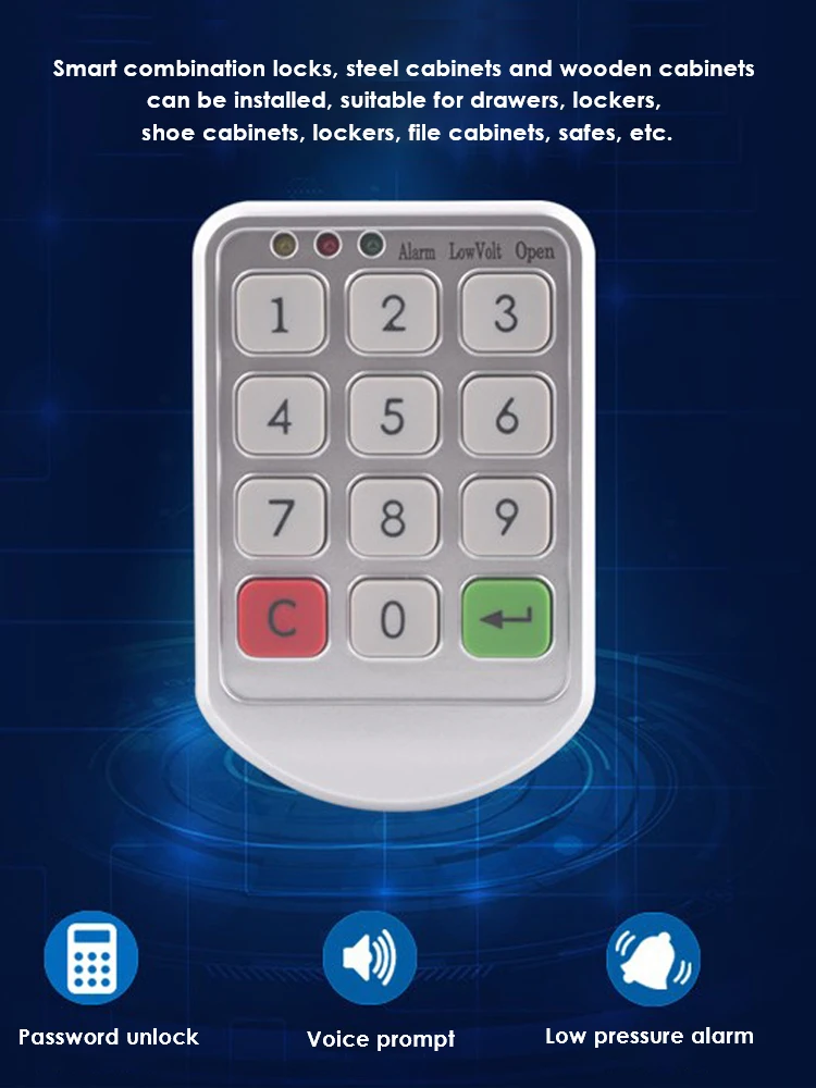 Smart password drawer cabinet door lock, no wiring required, use 4 AAA batteries; low-voltage warning and external power interface; prevent the lock will not be unlocked when the battery runs out; simple installation, stable performance; suitable for all kinds of drawers, cabinets and other places